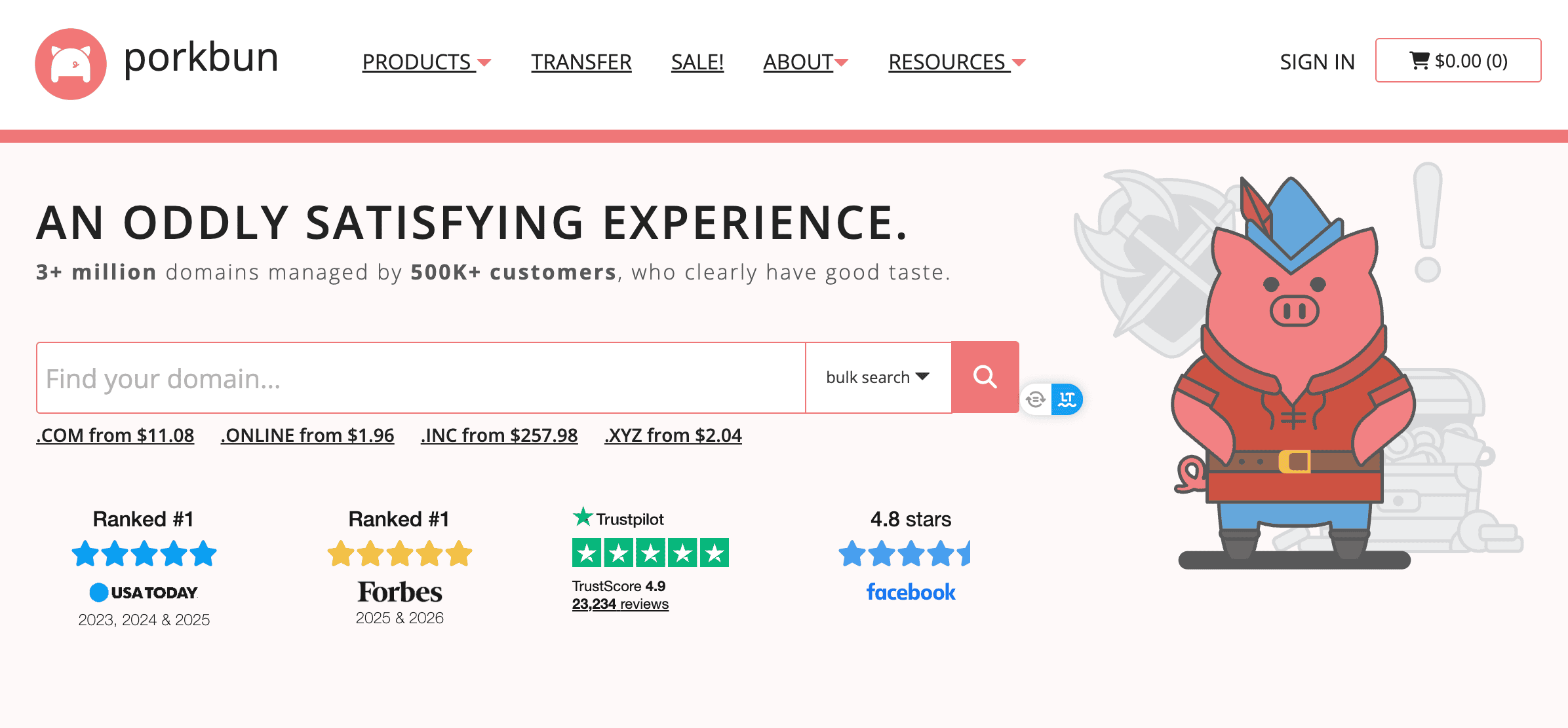 Porkbun es la opción que estoy usando en 2026 para todos mis dominios. Los he transferido desde Namecheap porque esta última empresa está subiendo mucho los precios de las renovaciones. Que no te confunda su nombre y marketing; son serios con su negocio.