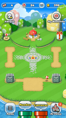 - Reino Champiñón: vamos construyendo nuestro reino poco a poco gastando monedas y tickets. Podemos conseguir unos cuantos mini-juegos.