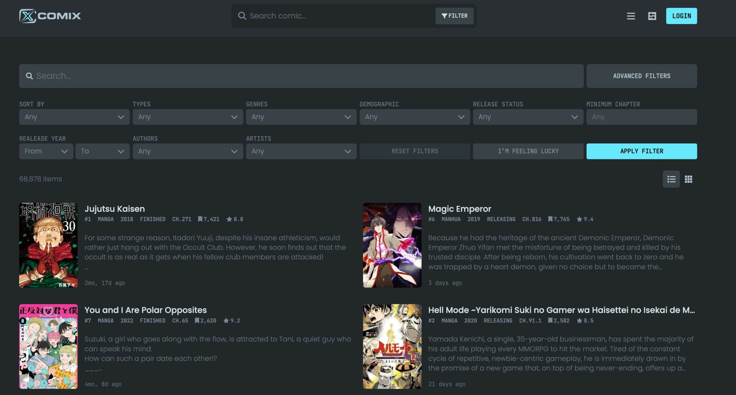 Una de las sustitutas de la web Comick.io. A finales de 2025 y principios de 2026, muchas páginas clásicas han dejado de funcionar. Comix viene al rescate.