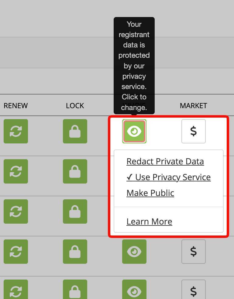 Gestión de dominios en Porkbun: WHOIS privacidad