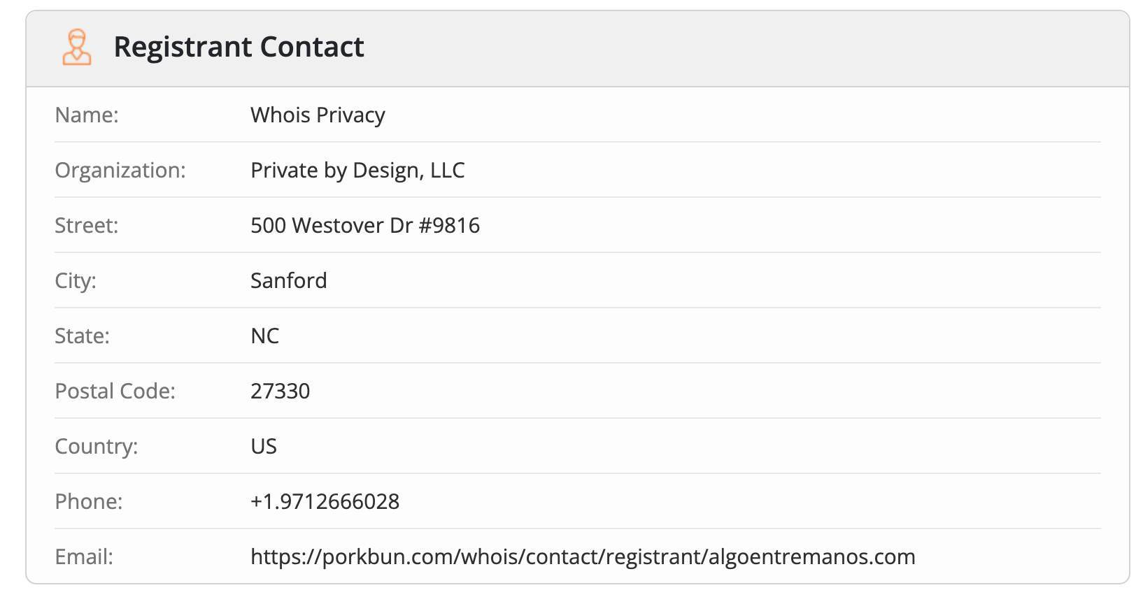 WHOIS datos de dominio privados.